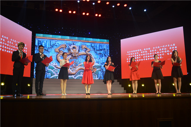 晚会伊始,张琰梓等获得省级以上各类奖项的优秀学生代表带来了红色经典朗诵,讴歌了“民族魂、中国梦”的主题。在一段原汁原味的莎剧剪影结束之后,晚会举行了颁奖仪式,汪尚霖、李子彬等节目代表上台领奖,杨荣耀、章周炎等领导为22个获奖节目节目颁奖。