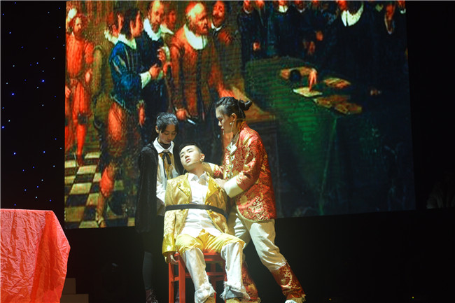 厉彦伯、张烨等同学出演的情景剧《罗密欧与朱丽叶》带来了晚会的第一个高潮,讲述了男女主角从相识到相爱,再到最终为爱殉情的经典爱情故事。参演者深情演绎,给予了观众别样的心灵震撼。俞熙雯、胡文辉等同学带来的莎剧串烧《罗密欧与朱丽叶》、《仲夏夜之梦》、《麦克白》,表演生动,情感真挚。