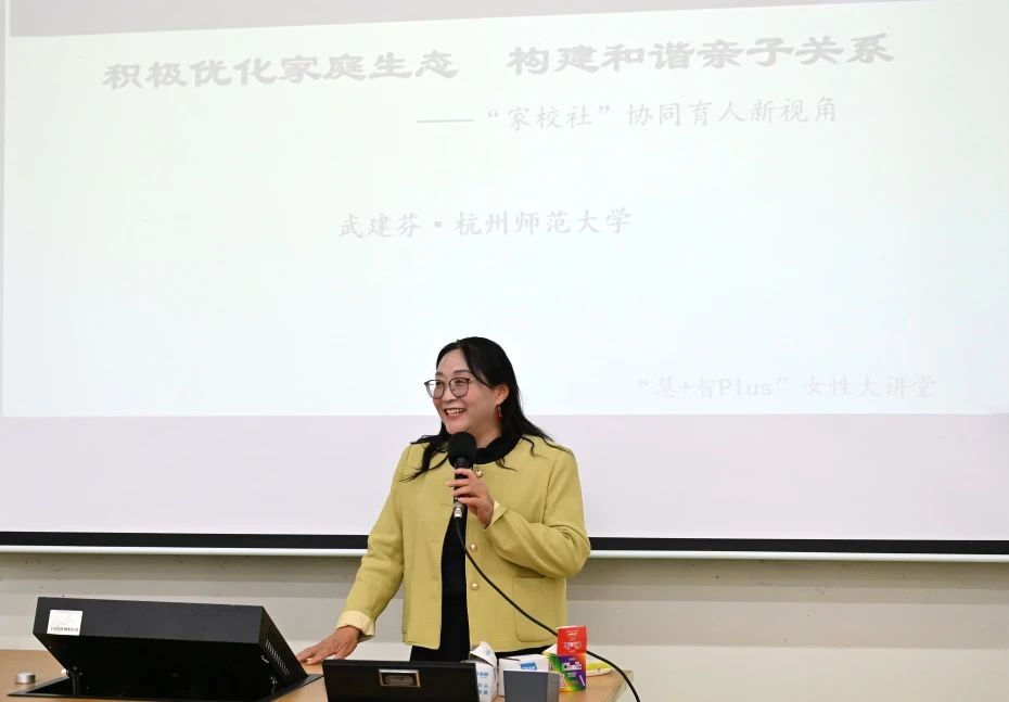 妇联、工会特邀杭州师范大学武建芬教授在博学楼(原第二教学楼)南108举行开展专题讲座。本次讲座围绕亲子沟通、家庭关系调适等话题展开分享,为在场教职工提供了科学实用的家庭教育指导。